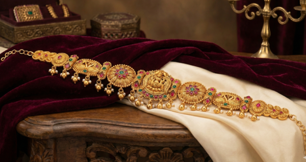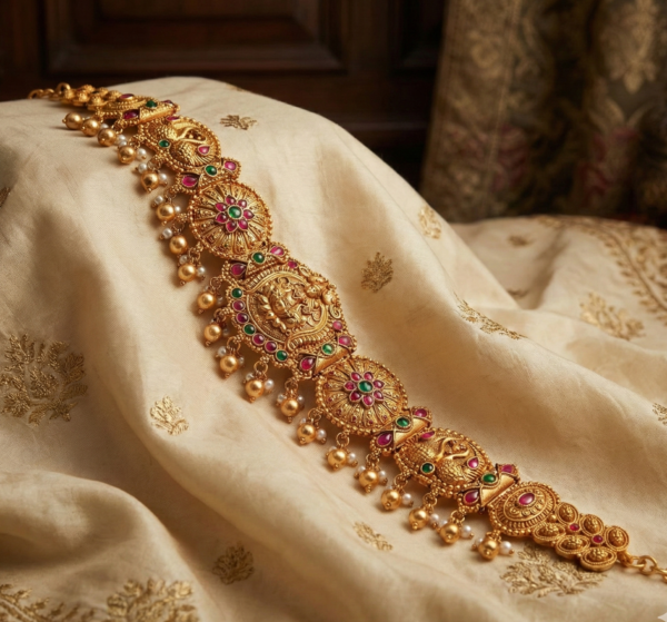 Elevate your ethnic wardrobe with this stunning New Designer Temple Hip Belt (Kamarbandh), a masterpiece of traditional Indian craftsmanship. Designed for the modern woman who cherishes heritage, this waist belt perfectly blends intricate detailing with regal elegance.