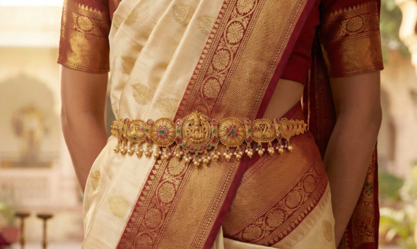 Styling Tip: This Kamarpatta adds definition to your waist and structure to your drape. It pairs exceptionally well with Kanjeevaram silk sarees, Banarasi sarees, and traditional half-sarees.