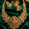 Elevate your ethnic wardrobe with this Divine Lakshmi Temple Short Necklace Set. Inspired by the rich cultural heritage of South Indian temple jewelry, this set is a masterpiece of intricate design and symbolic beauty.