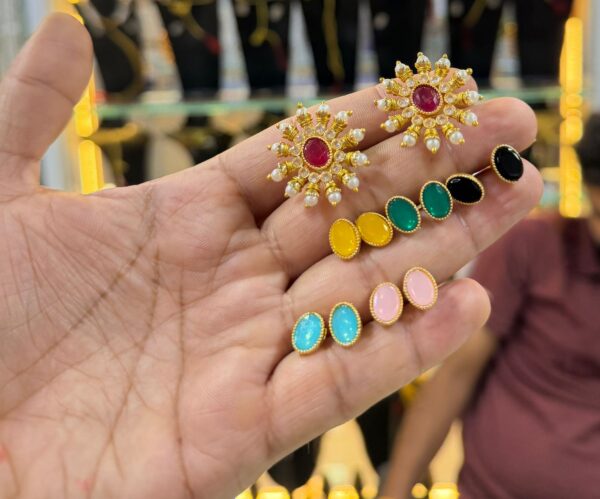 Elevate your ethnic wardrobe with our Exquisite Changeable Kundan Stud Earring Set. Designed for the modern woman who loves variety, this set solves the “what matches my dress?” dilemma instantly.
