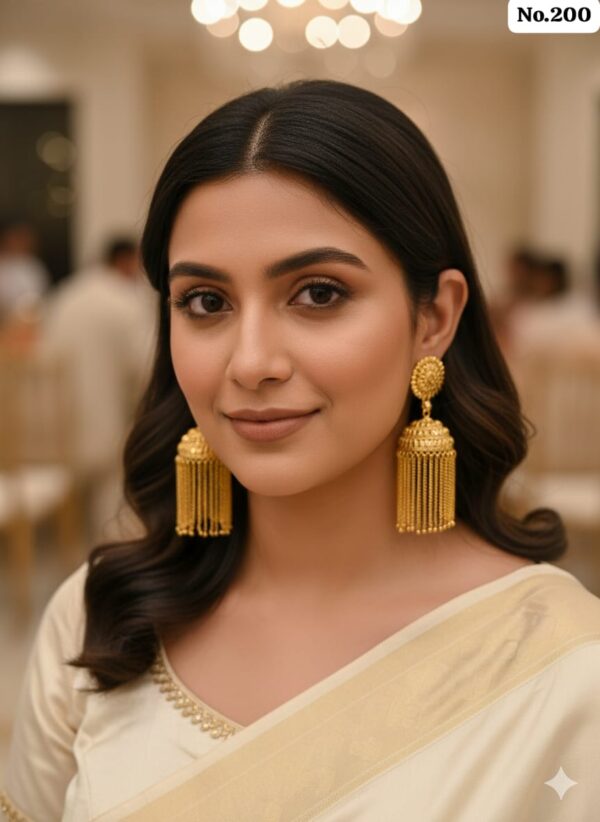 Each tassel is made up of numerous fine chains that create a waterfall effect, offering magnificent movement and a rich, luxurious shimmer with every turn of the head. Plated in a brilliant gold tone, these earrings perfectly blend traditional Indian aesthetics with a modern, grand silhouette.
