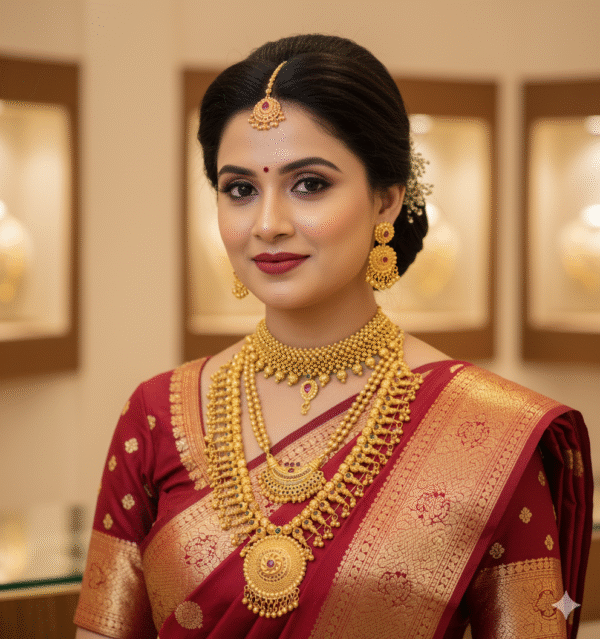 • Kolhapuri Saaj: A centerpiece necklace, symbolizing prosperity and marital bliss, featuring traditional motifs.