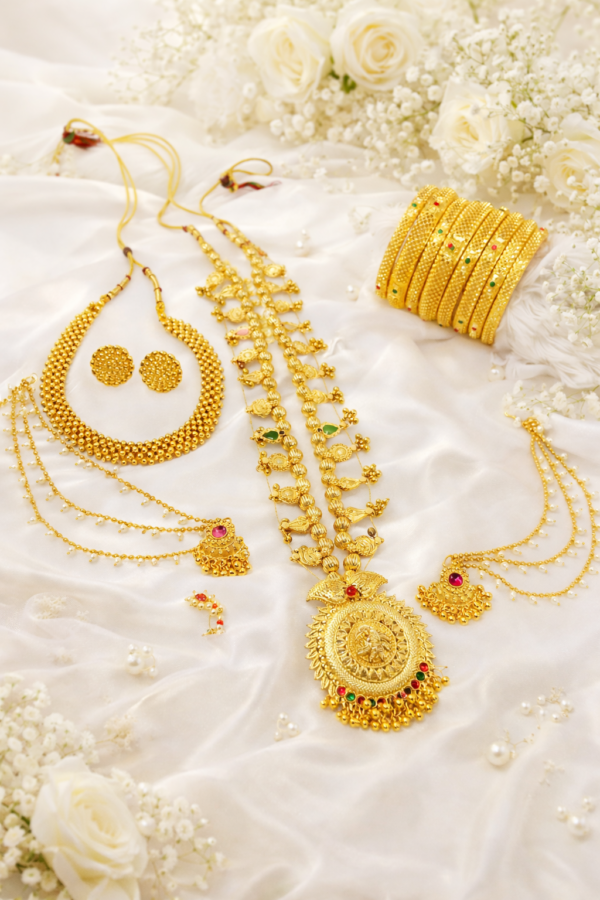 Whether you are preparing for a Marathi wedding, engagement, festival, or traditional event, this bridal jewellery set beautifully complements sarees, nauvari sarees, and other ethnic outfits.
