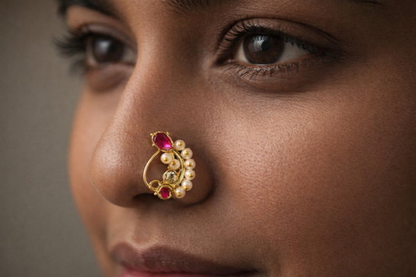 Whether paired with sarees, nauvari, lehengas, or festive outfits, this Maharashtrian nath beautifully complements ethnic attire and enhances your overall look.