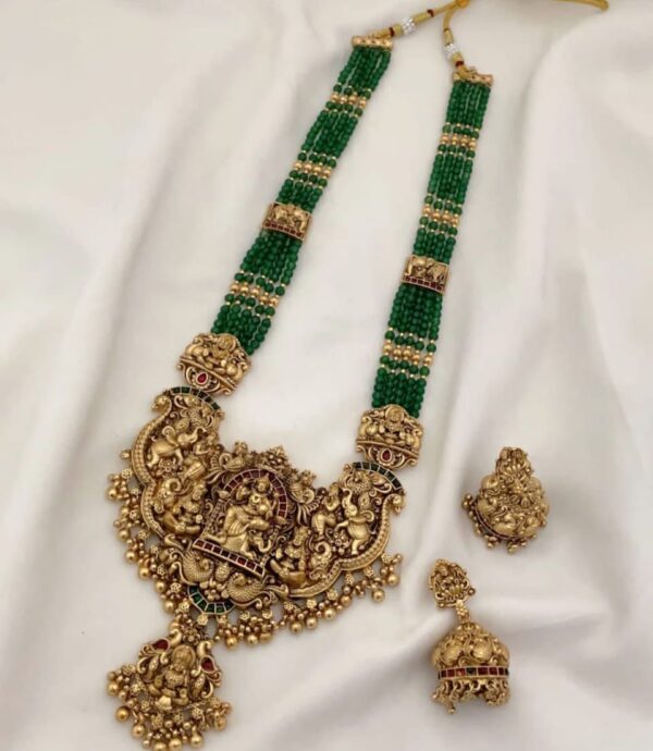 Be the first to review “Matte-Finish Deep Emerald Green Temple Necklace Set”