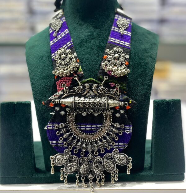 Oxidized Silver Tribal Necklace with Purple-Black Thread Work – Navratri Garba Jewellery