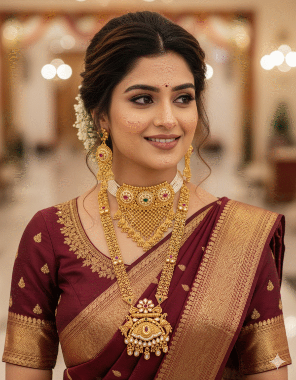 Be the first to review “Royal Heavy Rajwadi Combo Necklace Set – Antique Gold Plated Choker with Gold Bead Mesh, Long Chain with Grand Statement Pendant & Dangler Earrings for Brides” Cancel reply