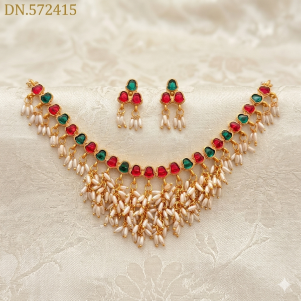 Whether you are styling for a bridal event or a festive gathering, this South Indian pearl drop necklace set adds instant grace and cultural charm to your look.