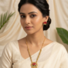 Enhance your traditional look with this stunning South Indian Lotus Pendant Necklace Set, designed with intricate craftsmanship and timeless elegance. The necklace features a beautifully detailed lotus motif pendant, symbolizing grace and purity, making it perfect for festive and cultural occasions.