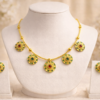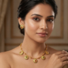 The necklace is paired with matching designer stud earrings, completing the coordinated jewellery set. Its versatile design pairs beautifully with sarees, lehengas, salwar suits, and other traditional Indian outfits.