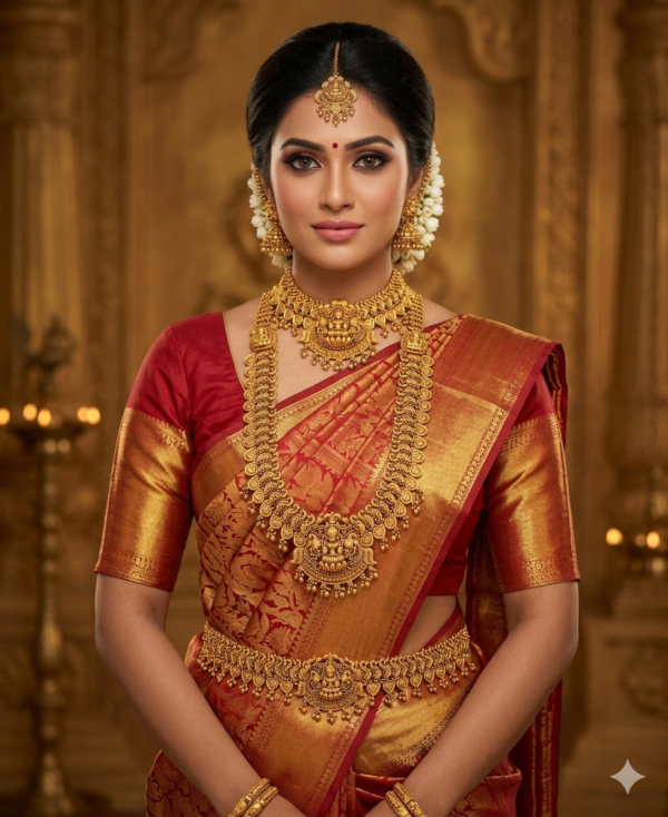 This versatile jewellery set pairs beautifully with Kanjivaram sarees, silk sarees, lehengas, and traditional South Indian outfits, making it ideal for weddings, engagements, festivals, temple functions, and cultural events.