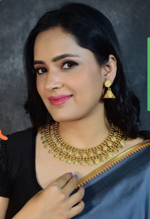 Be the first to review “Traditional Antique Gold Plated Lakshmi Coin Choker Necklace Set with Matching Earrings | South Indian Temple Jewelry Kasu Mala for Women & Girls”