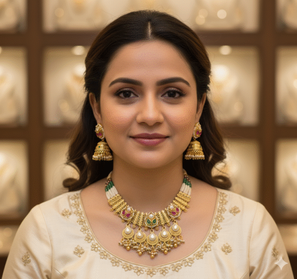 Be the first to review “Traditional Gold-Plated Rajwadi Choker Set with Multi-Color Kundan, Pearls & Jhumka Earrings”