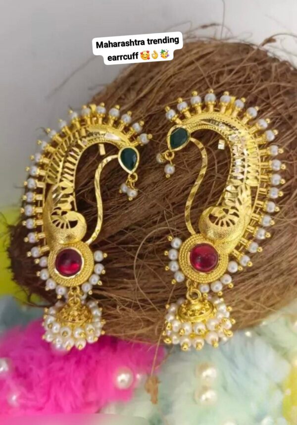 Step into the spotlight with our Maharashtra Trending Peacock Earcuffs, a masterpiece of traditional craftsmanship designed to make you feel like royalty.