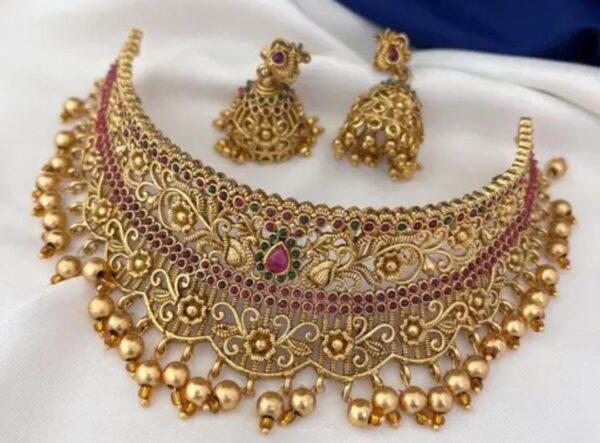 Be the first to review “Traditional Matt Finish Gold Plated Choker Necklace Set with Earrings for Women and Girls – Bridal & Party Wear Jewelry”