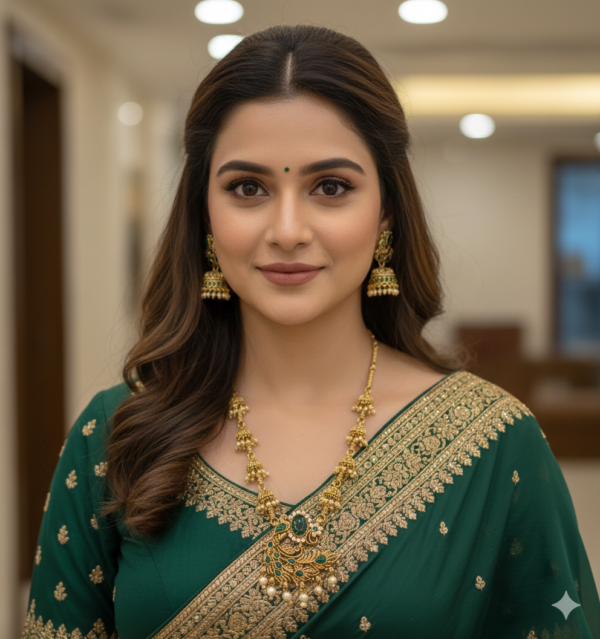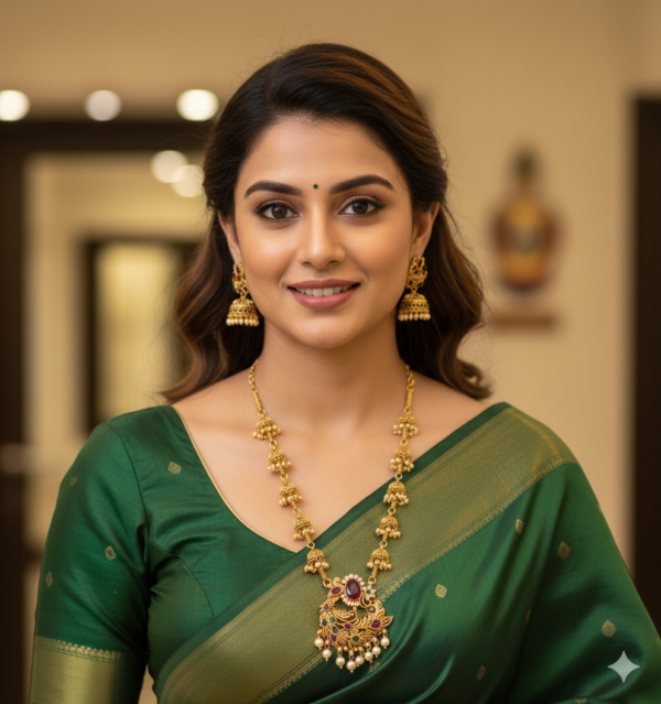 Whether you are dressing up for a grand wedding or a traditional festival, this set is designed to be the focal point of your outfit. The antique matte finish gives it an authentic vintage appeal, making it indistinguishable from solid gold heritage pieces. Available in three distinct stone settings—classic Green, royal Maroon, and a versatile Maroon-Green mix—it allows you to perfectly coordinate with your favorite silk sarees or lehengas.