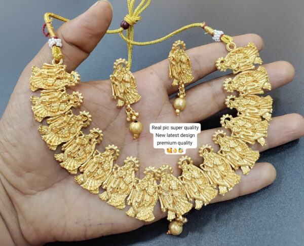 • Design: A choker-style necklace with a unique row of Radha Krishna motifs and intricate detailing.