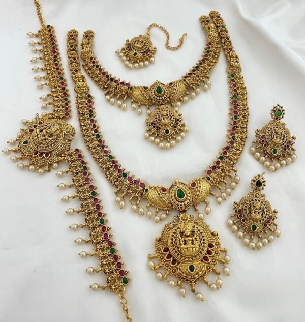 • Full Combo Set: Necklaces, kamarpatta, earrings, and maang tikka.