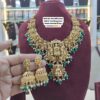 • Design: Grand temple-style necklace with green beads and deity motifs